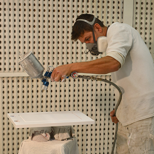 Our Pittsburgh office and warehouse space includes a specialized area with customized spray booths where we can do fine-spray finishing projects. These high-tech spray equipment booths allow us to work in a controlled temperature, dust-free environment. This is perfect for projects such as finishing new shutters, refinishing wood doors, kitchen cabinets or bedroom furniture.